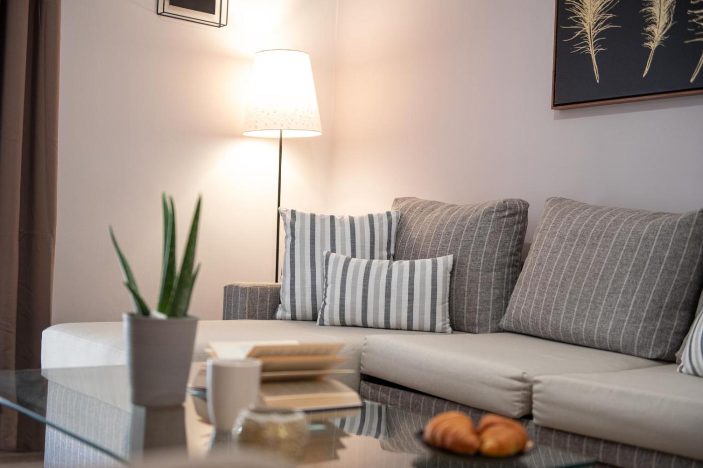 Deluxe Apartment. This spacious apartment comprises 1 living room, 2 separate bedrooms and 1 bathroom with a shower and free toiletries. In the well-equipped kitchen, guests will find a stovetop, a refrigerator, kitchenware and an oven. The air-conditioned apartment provides a flat-screen TV with streaming services, a washing machine, a private entrance, soundproof walls as well as city views. The unit offers 4 beds.