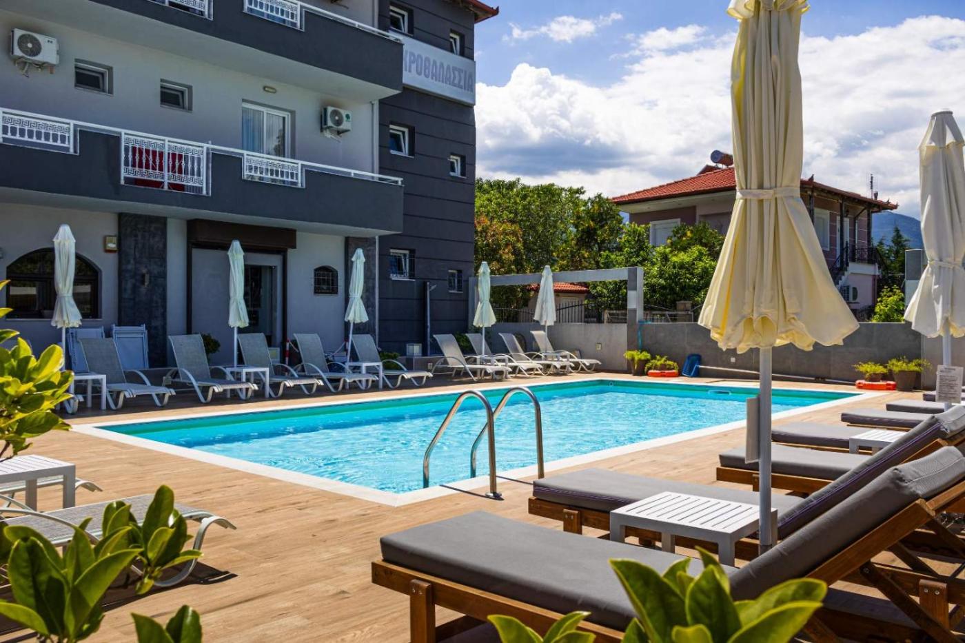 Akrothalassia has a garden, shared lounge, a terrace and restaurant in Leptokaria. Offering a bar, the property is located within a few steps of Leptokarya Beach. Guests can have a drink at the snack bar.