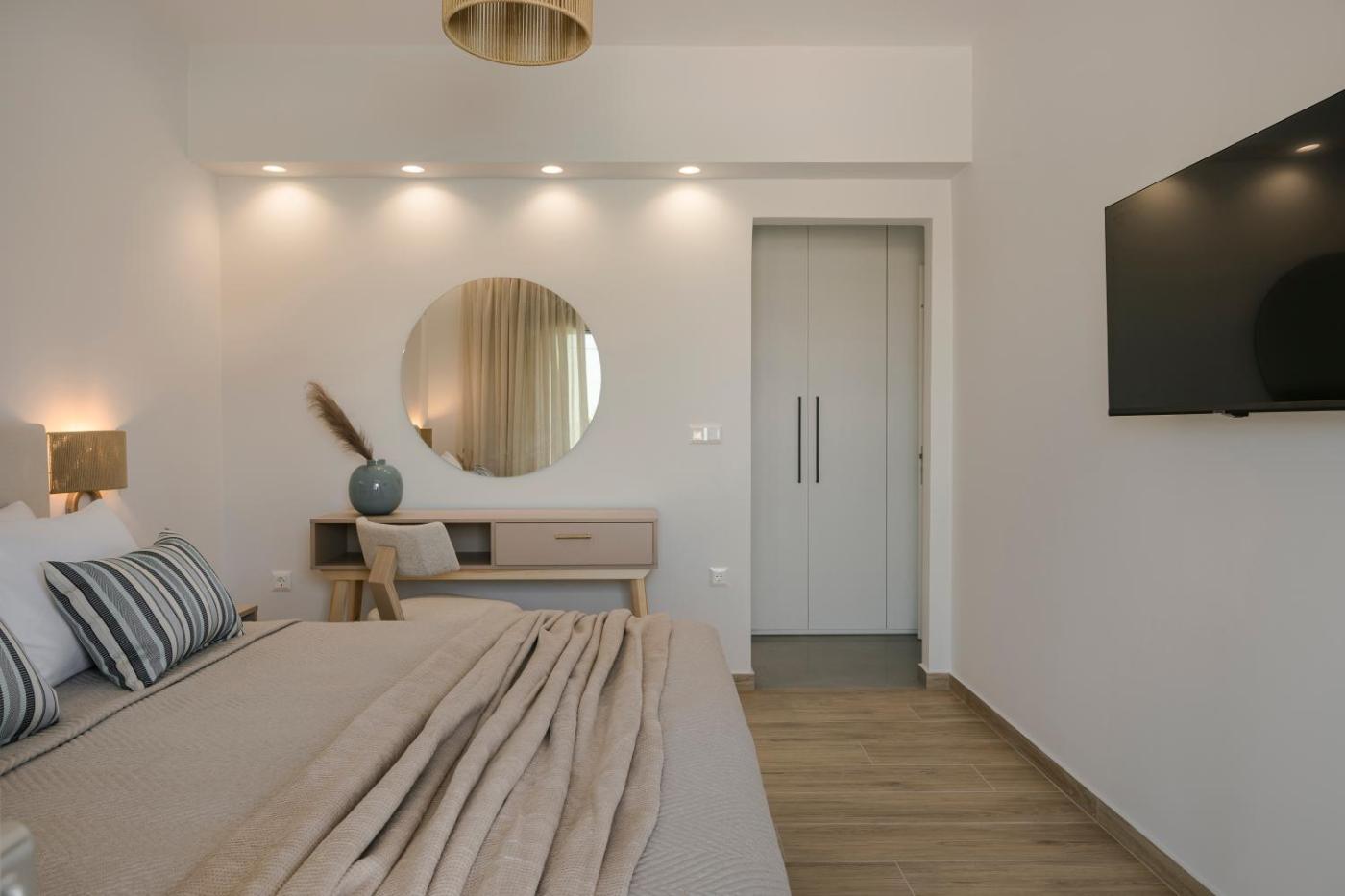 Three-Bedroom Villa. This villas standout feature is the pool with a view. Boasting a private entrance, this air-conditioned villa features 1 living room, 3 separate bedrooms and 2 bathrooms with a shower and a hairdryer. Guests will find a stovetop, a refrigerator, a dishwasher and kitchenware in the kitchen. The villa also comes with a barbecue. Featuring a terrace with sea views, this villa also features a tea and coffee maker and a flat-screen TV with streaming services. The unit has 4 beds.